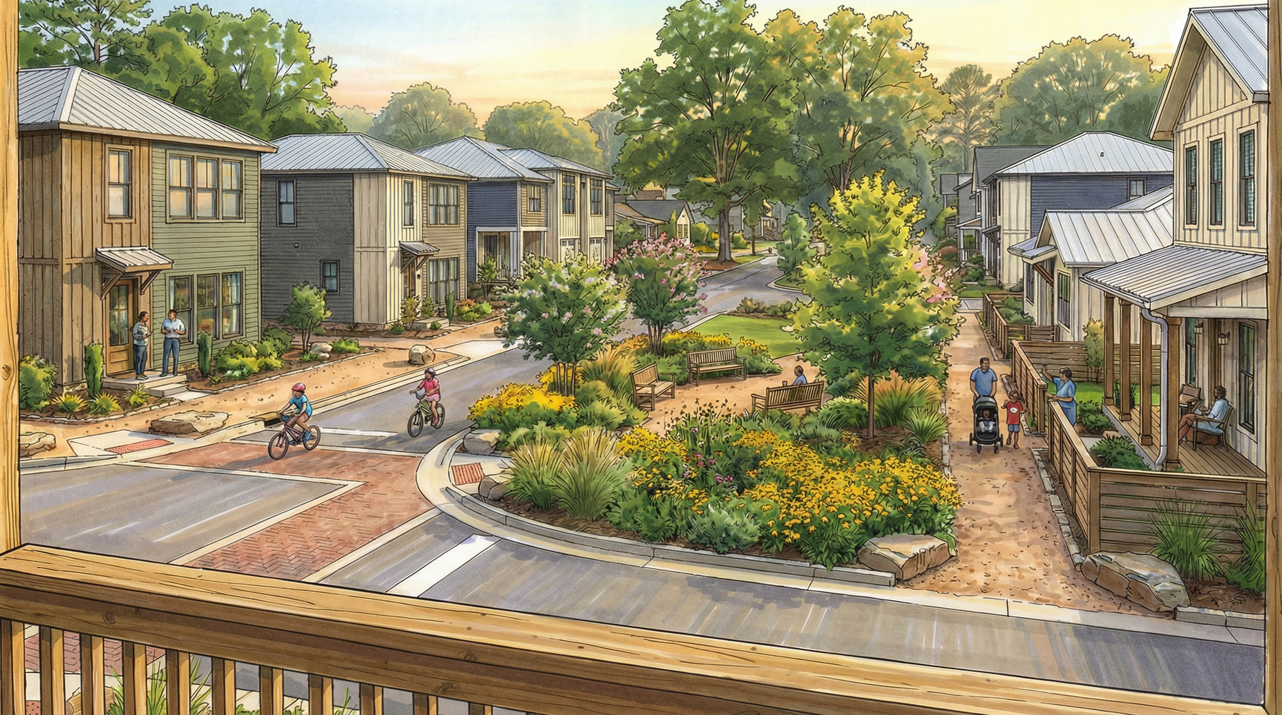 So he learned a new language. Covenants. Zoning law. Lender negotiations. The slow, unglamorous machinery of how land actually gets held and developed. The same instincts that worked in the garden—patience, stewardship, thinking in generations—turned out to work for housing too.