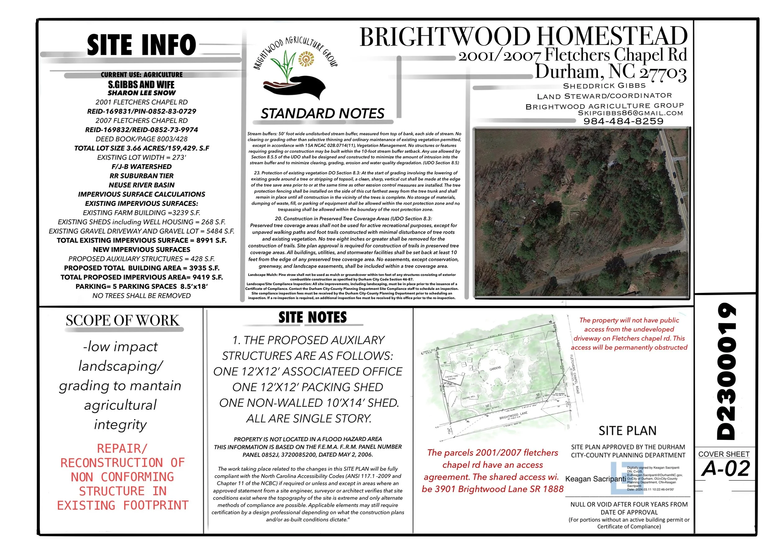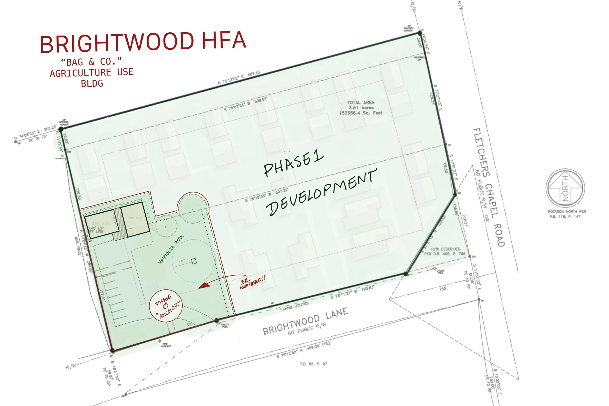 The Durham City-County Planning Department has officially stamped the site plan for BAG and Company—the anchor building for Brightwood Homestead.